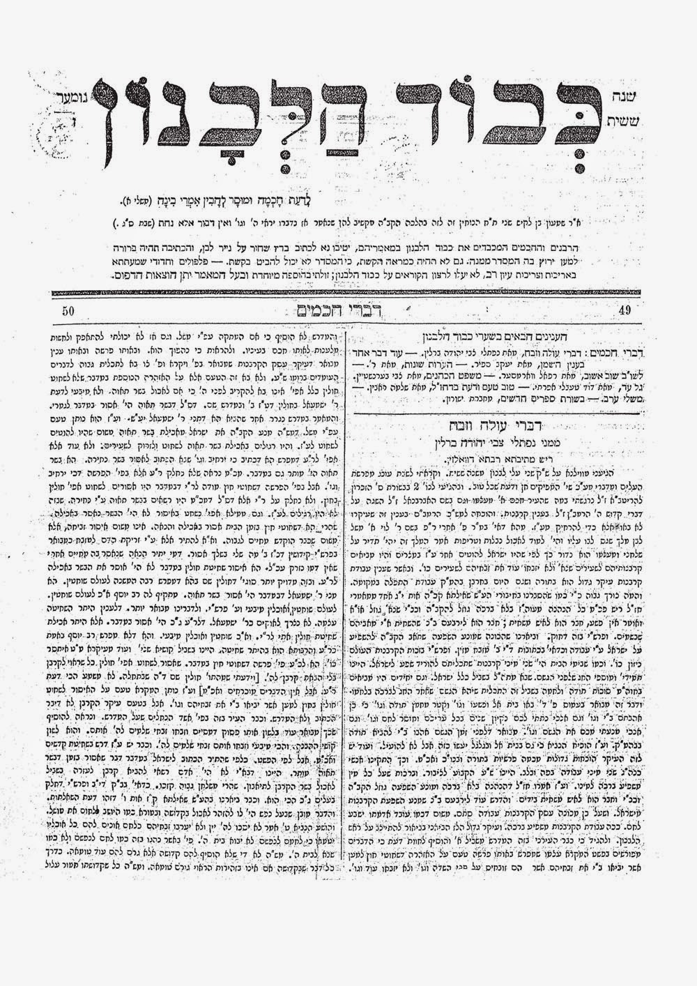 Ha-Levonon‘s first year, in the ninth issue we find a nice long article from Rabbi Chaim Berlin related to