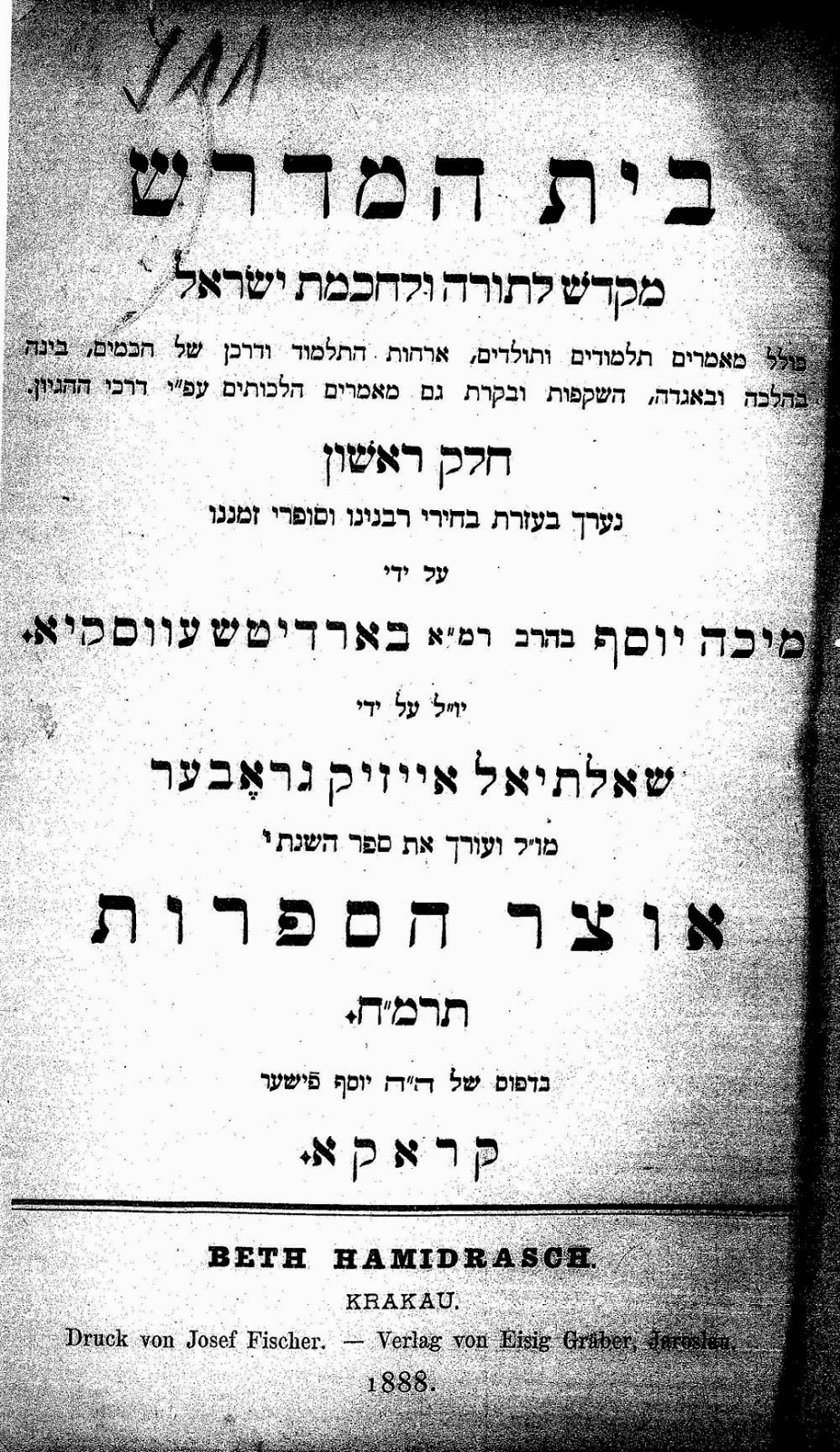I am not sure how much the sons Meir and Yakov had to do with the printing. Meir was fourteen years old at the time and Yakov was about seventeen[18].