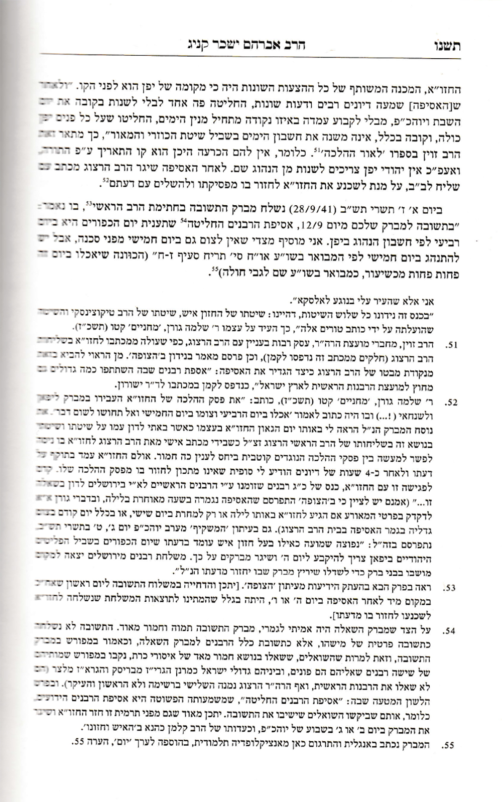בתשובה למברק שלכם מיום 12.9, אספת רבנים בנשיאותי החליטה שתצומו ליום כיפור ביום רביעי לפי חשבון הנהוג ביפן וכו’