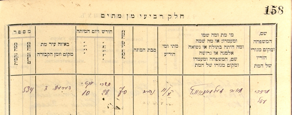 The full force of the Hebrew term בעלהקברות is not really captured by the English term “caretaker.” There were a variety of cemetery attendants who worked in the old Jewish cemetery in various capacities (such as guiding visitors and leading them to the graves they wished to visit, reciting prayers at the graves, ground-keeping, repairing broken tombstones and re-inking their inscriptions, and guard duty). But one cemetery attendant was in charge of all the other attendants, and as we shall see, he and his family lived in the house on the cemetery grounds. He was called: בעלהקברות, perhaps best rendered as: “Cemetery Keeper” or “Managing Director” of the old Jewish cemetery. We have established that Meir Zelmanovich served in that capacity. But who was he when did he live?