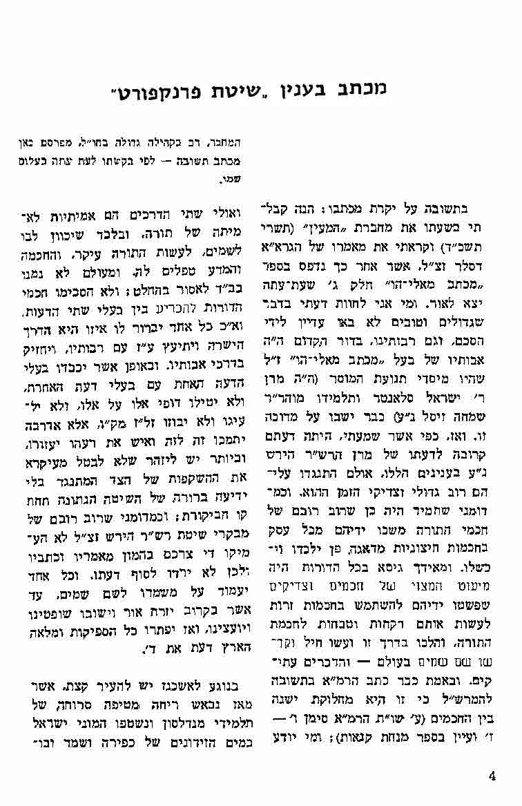 [5] Anonymous, “A Letter Regarding ‘the Frankfurt Approach’,” ha-Ma’ayan, vol. 6, no. 4 (1966): 4-7 (Hebrew)