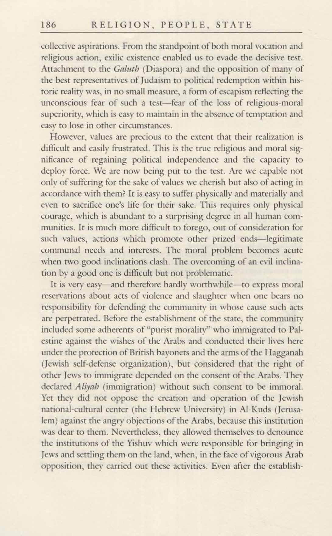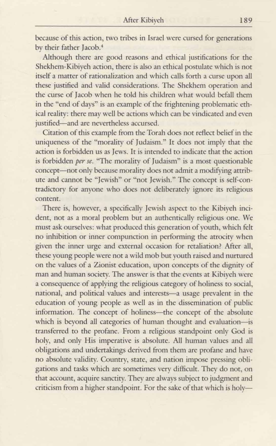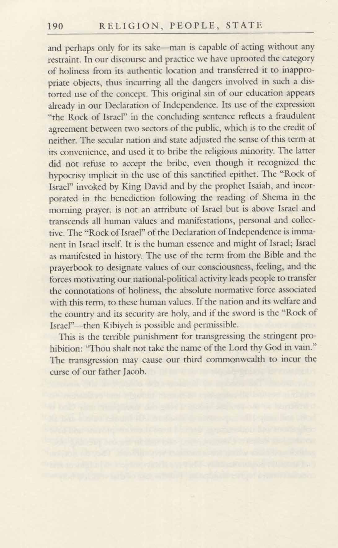 See Yeshayahu Leibowitz, Judaism, Human Values, and the Jewish State (Cambridge, MA: Harvard University Press, 1992), 241-248. ↑