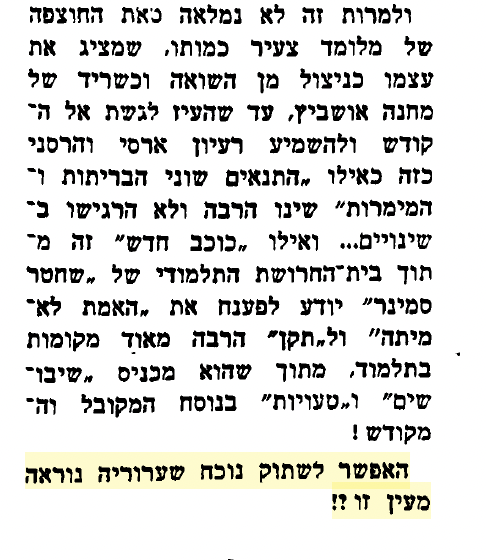 The New York Times narrative, however, is fundamentally flawed. It misidentifies the institutional character and editorial posture of the Beys Yaakov Journal, misconstrues the nature of its engagement with contested scholarship, and rests on a tendentious, if not deliberate, mistranslation of a pivotal passage. More importantly, it mislocates the center of Orthodox resistance to Halivni’s work. The critique in that article in Beys Yaakov Journal, and the journalistic distortions surrounding it, should not be mistaken for the principal arena of Orthodox opposition. The more consequential controversy unfolded within the American Modern Orthodox world, particularly at Yeshiva University and among its associated intellectual networks, circles far more familiar to the Times readership and far more central to the internal struggles of American Judaism during the period under review. As we will demonstrate in a subsequent installment of this series, it was there, rather than in Israeli party politics, that the most sustained and institutionally significant resistance to Halivni took shape.